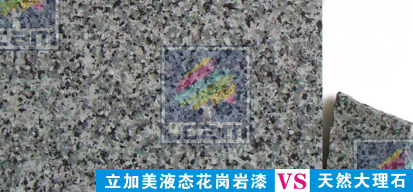 立加美高端花彩漆又称液态花岗岩漆、水包水、多彩涂料与天然真石漆、花岗岩石漆、质感漆、砂胶漆等砂壁状品种比较,在本质上和状态上具有完全不同的概念即,是以物理化学的胶体技术和表面处理技术为基础,融入了物质的物理变化及化学反应的多项转化,将液态的水性树脂提炼包裹成胶状的水性彩色颗粒,并均匀地悬浮在特定的水性乳胶中,最终形成了多姿多彩的、颗粒大小随意的高分子液态胶状的共聚物。它不但具有普通建筑涂料的所有特性,更具有极强的耐候性、抗龟裂性和环保性以及仿花岗石等特性。特别是其模仿花岗石的效果已达炉火纯青、真假难辨的地步。该技术既源于建筑涂料的合成理念,但又超越了建筑涂料的认知概念,是建筑涂料的一项重大创新应用产品。