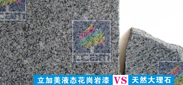 立加美高端花彩漆又称液态花岗岩漆、水包水、多彩涂料与天然真石漆、花岗岩石漆、质感漆、砂胶漆等砂壁状品种比较,在本质上和状态上具有完全不同的概念即,是以物理化学的胶体技术和表面处理技术为基础,融入了物质的物理变化及化学反应的多项转化,将液态的水性树脂提炼包裹成胶状的水性彩色颗粒,并均匀地悬浮在特定的水性乳胶中,最终形成了多姿多彩的、颗粒大小随意的高分子液态胶状的共聚物。它不但具有普通建筑涂料的所有特性,更具有极强的耐候性、抗龟裂性和环保性以及仿花岗石等特性。特别是其模仿花岗石的效果已达炉火纯青、真假难辨的地步。该技术既源于建筑涂料的合成理念,但又超越了建筑涂料的认知概念,是建筑涂料的一项重大创新应用产品。