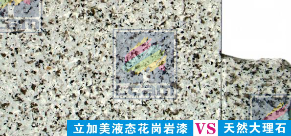 立加美高端花彩漆又称液态花岗岩漆、水包水、多彩涂料与天然真石漆、花岗岩石漆、质感漆、砂胶漆等砂壁状品种比较,在本质上和状态上具有完全不同的概念即,是以物理化学的胶体技术和表面处理技术为基础,融入了物质的物理变化及化学反应的多项转化,将液态的水性树脂提炼包裹成胶状的水性彩色颗粒,并均匀地悬浮在特定的水性乳胶中,最终形成了多姿多彩的、颗粒大小随意的高分子液态胶状的共聚物。它不但具有普通建筑涂料的所有特性,更具有极强的耐候性、抗龟裂性和环保性以及仿花岗石等特性。特别是其模仿花岗石的效果已达炉火纯青、真假难辨的地步。该技术既源于建筑涂料的合成理念,但又超越了建筑涂料的认知概念,是建筑涂料的一项重大创新应用产品。