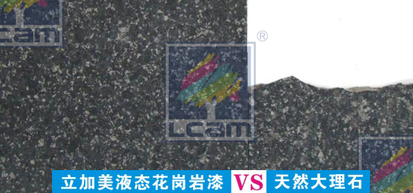 立加美高端花彩漆又称液态花岗岩漆、水包水、多彩涂料与天然真石漆、花岗岩石漆、质感漆、砂胶漆等砂壁状品种比较,在本质上和状态上具有完全不同的概念即,是以物理化学的胶体技术和表面处理技术为基础,融入了物质的物理变化及化学反应的多项转化,将液态的水性树脂提炼包裹成胶状的水性彩色颗粒,并均匀地悬浮在特定的水性乳胶中,最终形成了多姿多彩的、颗粒大小随意的高分子液态胶状的共聚物。它不但具有普通建筑涂料的所有特性,更具有极强的耐候性、抗龟裂性和环保性以及仿花岗石等特性。特别是其模仿花岗石的效果已达炉火纯青、真假难辨的地步。该技术既源于建筑涂料的合成理念,但又超越了建筑涂料的认知概念,是建筑涂料的一项重大创新应用产品。