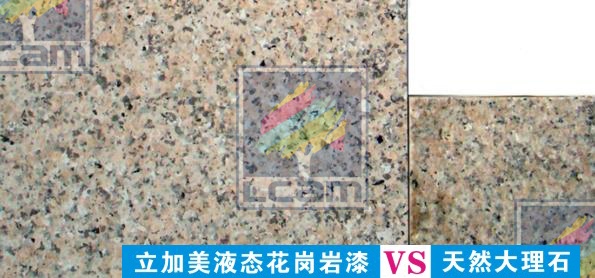 立加美高端花彩漆又称液态花岗岩漆、水包水、多彩涂料与天然真石漆、花岗岩石漆、质感漆、砂胶漆等砂壁状品种比较,在本质上和状态上具有完全不同的概念即,是以物理化学的胶体技术和表面处理技术为基础,融入了物质的物理变化及化学反应的多项转化,将液态的水性树脂提炼包裹成胶状的水性彩色颗粒,并均匀地悬浮在特定的水性乳胶中,最终形成了多姿多彩的、颗粒大小随意的高分子液态胶状的共聚物。它不但具有普通建筑涂料的所有特性,更具有极强的耐候性、抗龟裂性和环保性以及仿花岗石等特性。特别是其模仿花岗石的效果已达炉火纯青、真假难辨的地步。该技术既源于建筑涂料的合成理念,但又超越了建筑涂料的认知概念,是建筑涂料的一项重大创新应用产品。