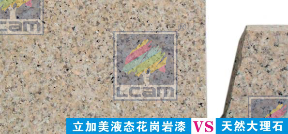立加美高端花彩漆又称液态花岗岩漆、水包水、多彩涂料与天然真石漆、花岗岩石漆、质感漆、砂胶漆等砂壁状品种比较,在本质上和状态上具有完全不同的概念即,是以物理化学的胶体技术和表面处理技术为基础,融入了物质的物理变化及化学反应的多项转化,将液态的水性树脂提炼包裹成胶状的水性彩色颗粒,并均匀地悬浮在特定的水性乳胶中,最终形成了多姿多彩的、颗粒大小随意的高分子液态胶状的共聚物。它不但具有普通建筑涂料的所有特性,更具有极强的耐候性、抗龟裂性和环保性以及仿花岗石等特性。特别是其模仿花岗石的效果已达炉火纯青、真假难辨的地步。该技术既源于建筑涂料的合成理念,但又超越了建筑涂料的认知概念,是建筑涂料的一项重大创新应用产品。